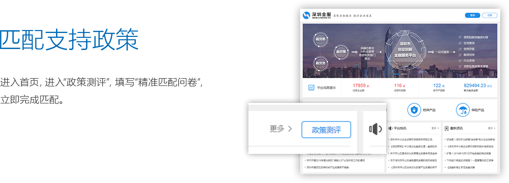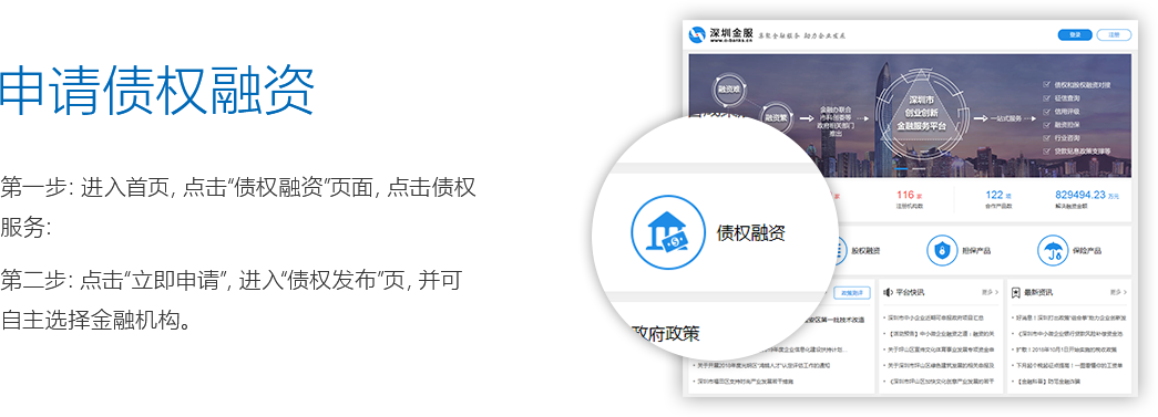 深圳金服平台立足从供给侧引导金融资源支持实体经济发展,通过为不同发展阶段的企业提供债权和股权融资对接、征信查询、信用评级、融资担保、行业咨询、投融资政策支撑等一站式服务,力求化解企业“融资难”、“融资贵”及“融资繁”等问题。
