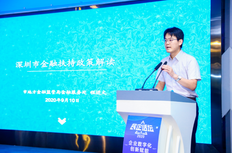 活动中,深圳市地方金融监督管理局程进文博士就深圳金融抗疫政策进行全方位解读。他说,因为受疫情的影响,很多中小企业都存在融资难、融资贵的问题。因此,金融支持实体经济的表述也不断出现在各个政府的文件中。